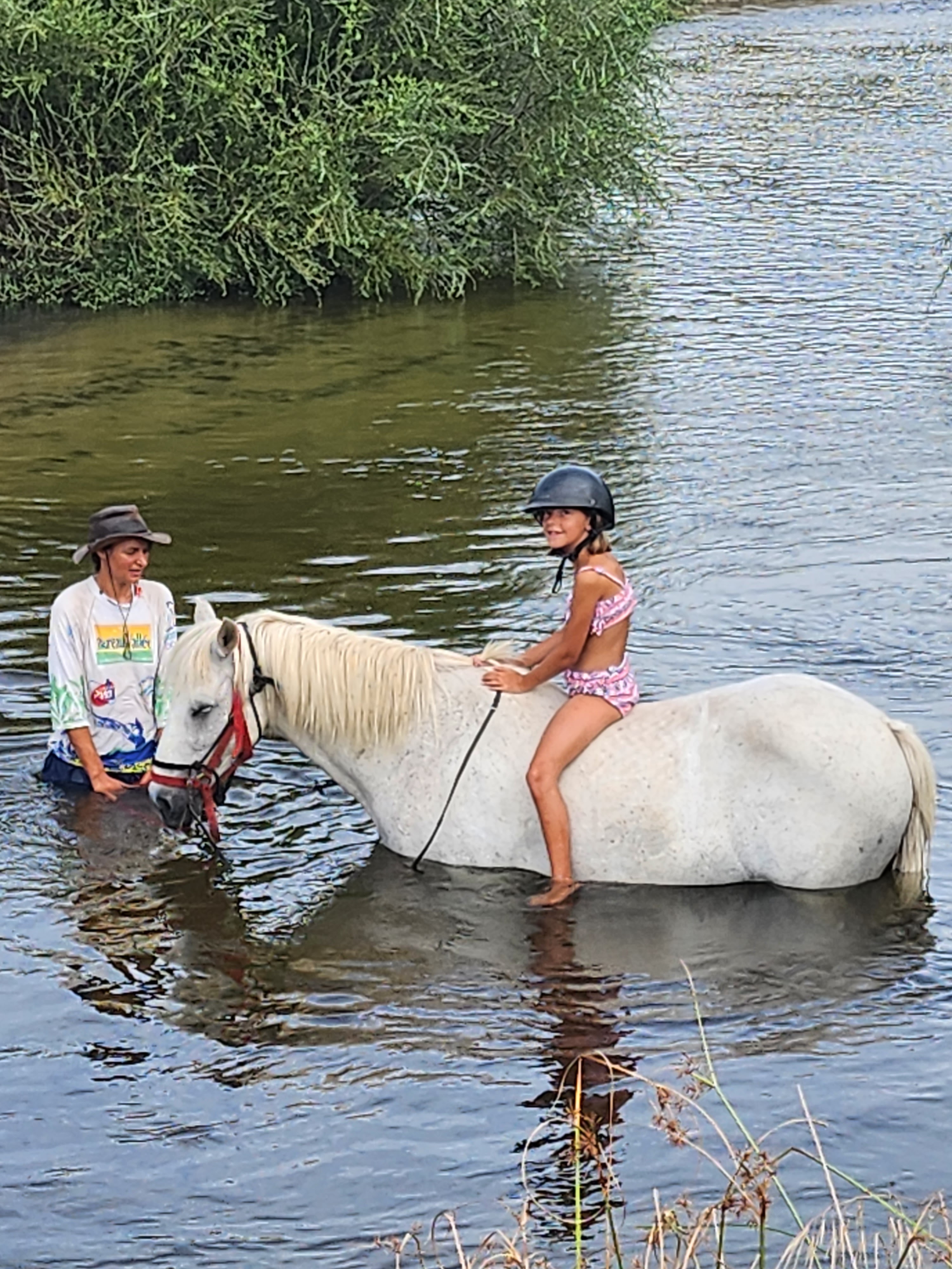 Tout simplement dépaysant et hors du temps, parfait pour les enfants (7ans et 2,5ans s’il est à l’aise). Baignade très agréable avec des poneys très gentils (merci à Bébé et Chantilly). Manue est une guide très attentionnée qui s’assure que nous passions un bon moment. Merci 🙏